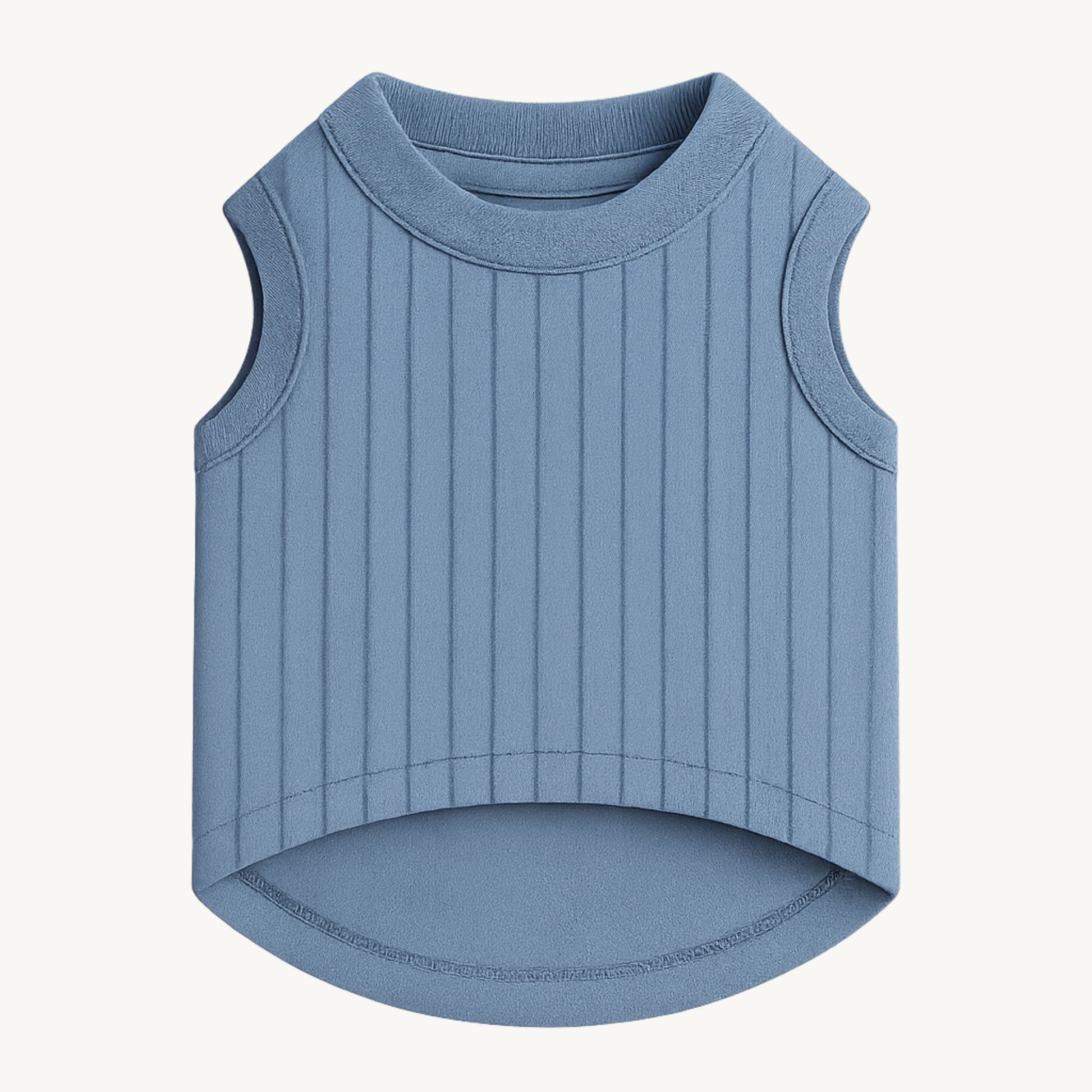 Elevated basics, redefined for your pup. The Slate Ribbed Muscle Tee features a minimalist sleeveless cut with a premium ribbed texture that adds just the right amount of stretch and structure. The soft slate blue hue keeps things cool and versatile — ideal for everyday walks, layering, or lounging indoors. A subtle statement piece that pairs effortlessly with any pup personality.